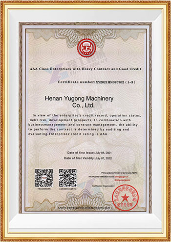 Henan Yugong Machinery Co., Ltd., established in 2005, boasts 20 years of industry experience, over 600 employees, and an 80,000 square meter modern factory. Yugong holds registered trademarks such as "Yugong Machinery" and is certified by ISO International Quality Management System, National AAA Integrity Enterprise, and SGS International Certification. The company employs professional product development and pre-sales and after-sales personnel. With its superior products and services, the company has earned the trust and recognition of over 3,000 customers, and its products are exported to over 140 countries and regions worldwide. Yugong always adheres to the customer-first principle, ensuring every customer receives satisfactory products and services.
