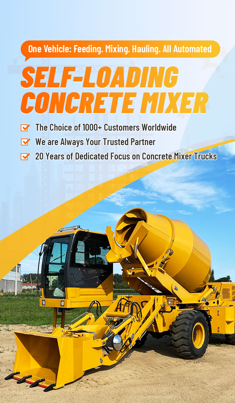 Our self-loading concrete mixer truck features a heavy-duty chassis and a fully hydraulic drive system, integrating automatic feeding, mixing, driving, and 270° unloading functions into one machine. It boasts three major advantages: single-person operation, saving manpower and time; powerful performance with a Yuchai engine and Rexroth hydraulic system, capable of climbing 40° slopes; and a closed-loop hydraulic system and electronic metering, ensuring consistent concrete quality. Suitable for confined municipal spaces, remote areas, and high-standard modern construction sites.