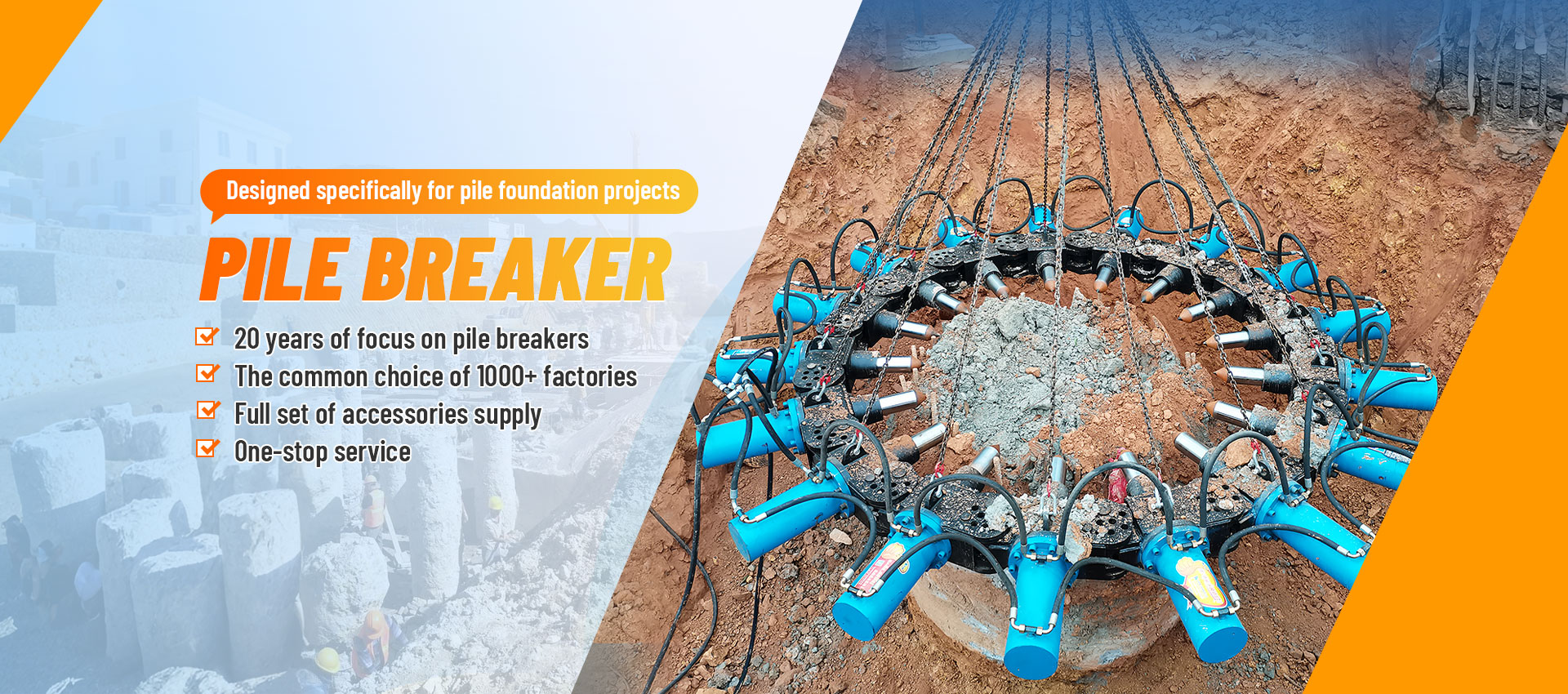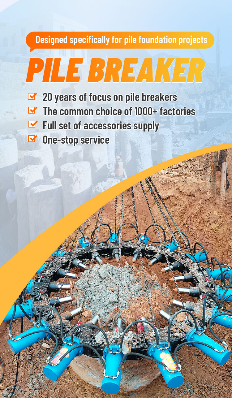 Pile breakers, specifically designed for pile foundation projects, can quickly remove the heads of cast-in-place and precast piles. Hydraulically driven, using an excavator or hydraulic station as power, multiple cylinders push the drill rod against the pile body to break the pile. Their modular design allows for the addition and removal of modules based on pile diameter, adapting to a wide range of construction machinery. They are easy to operate, efficient, and quiet, preserving rebar without damaging the parent pile, ensuring project quality and safety.