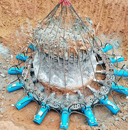 The pile breaking process is precisely controlled, effectively preserving the integrity of the rebar without damaging the parent pile structure.