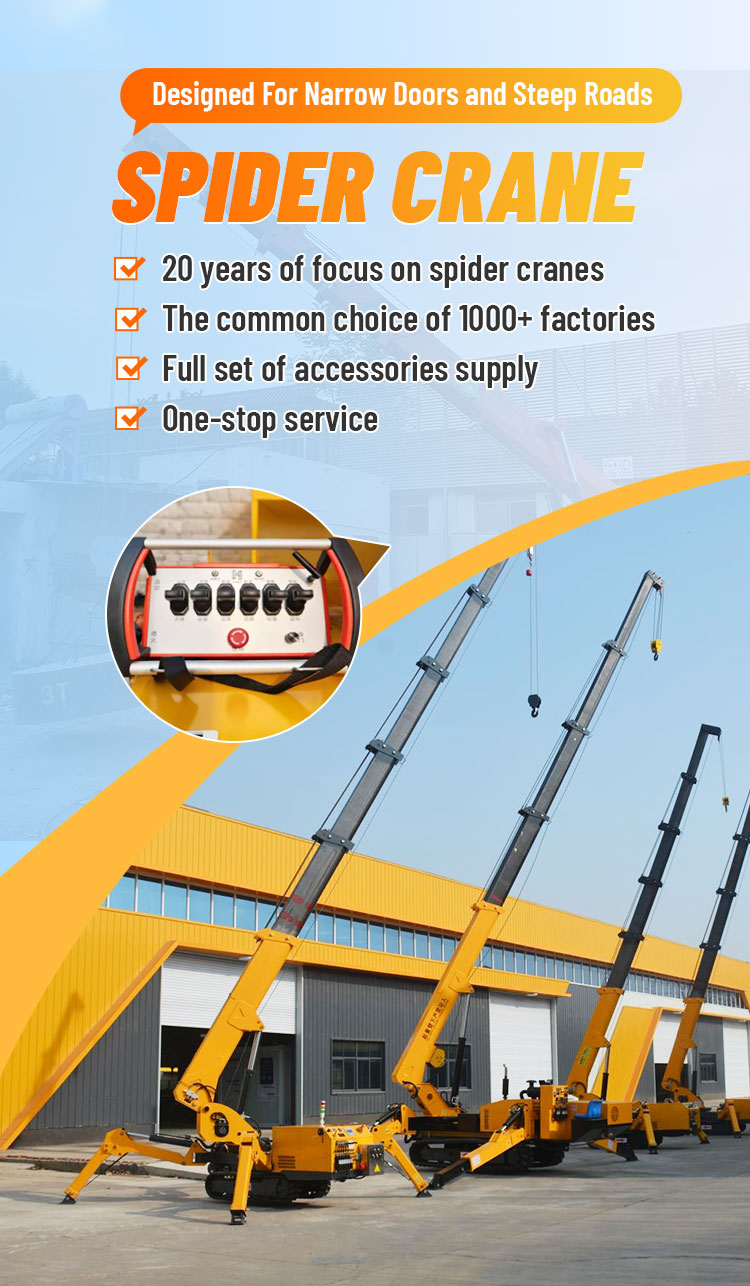 The Spider Crane gets its name from its spider-like outrigger design. During transport, the outriggers retract, creating a compact crane body that easily navigates narrow streets and accesses areas difficult for conventional cranes. During operation, the outriggers extend, extending the crane's wide span and providing exceptional stability for safe lifting. In construction, the Spider Crane's compact, flexible, stable, and efficient design makes it a valuable tool for solving complex lifting challenges in various fields, bringing convenience and efficiency to your work.